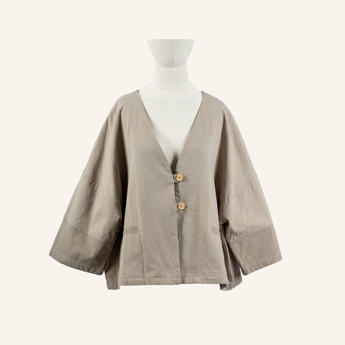 WOMAN JACKET - BEIGE AND GRAY PATTERNED FABRIC - 124341