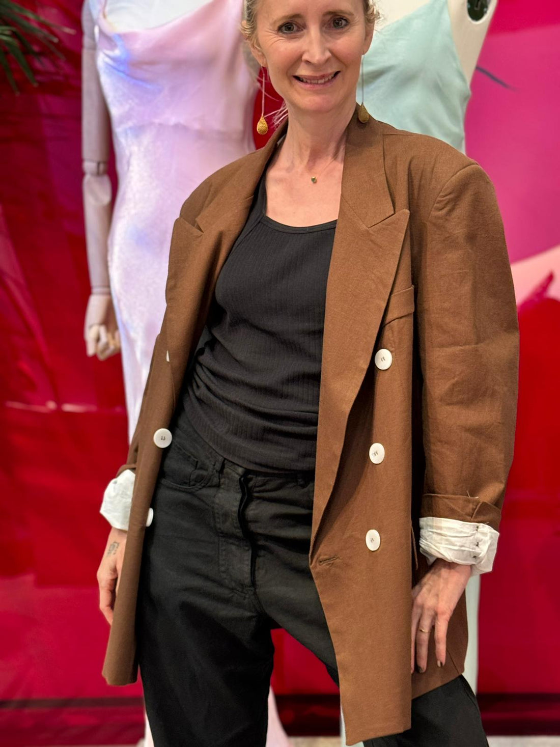 Cotton blend dressShoulder dropped3/4 sleevesSide pockets in the seamMidi cutLoose and comfortable fit SKU:110830 MADE...