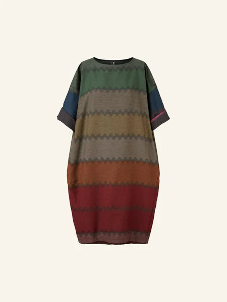 DRESS IN MULTICOLOR FABRIC AUTUMN PALETTE - 110830