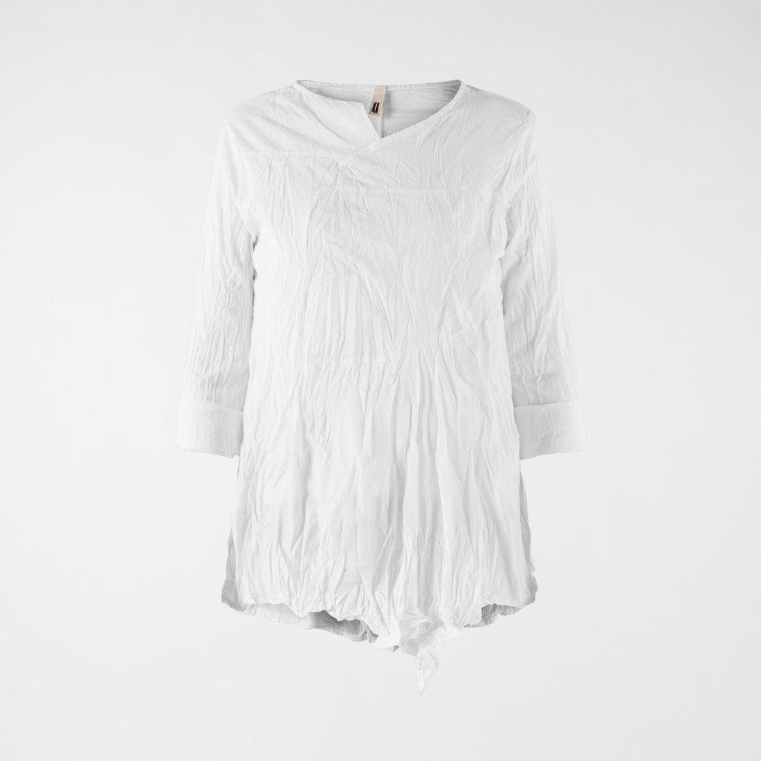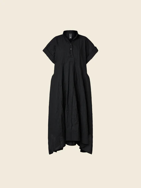 Dress in cotton blend fabric with wrinkled effectMandarin collar and neckline with Polo buttoningDropped shoulder...