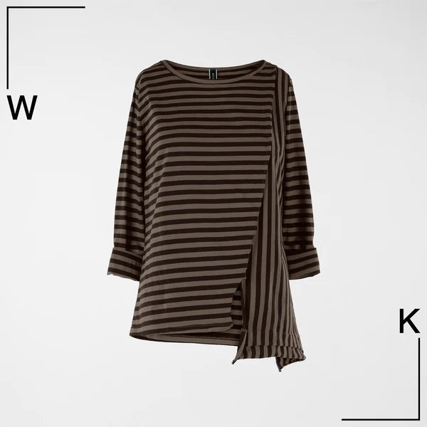 BROWN - STRIPED T-SHIRT WITH SPLIT - 110467