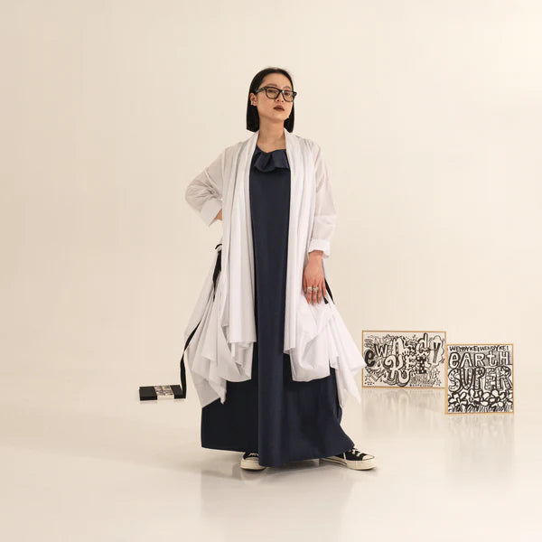 Lightweight cotton blend poplin cardiganShawl collarDropped shoulder and long sleevesDetail side shots on the sides...