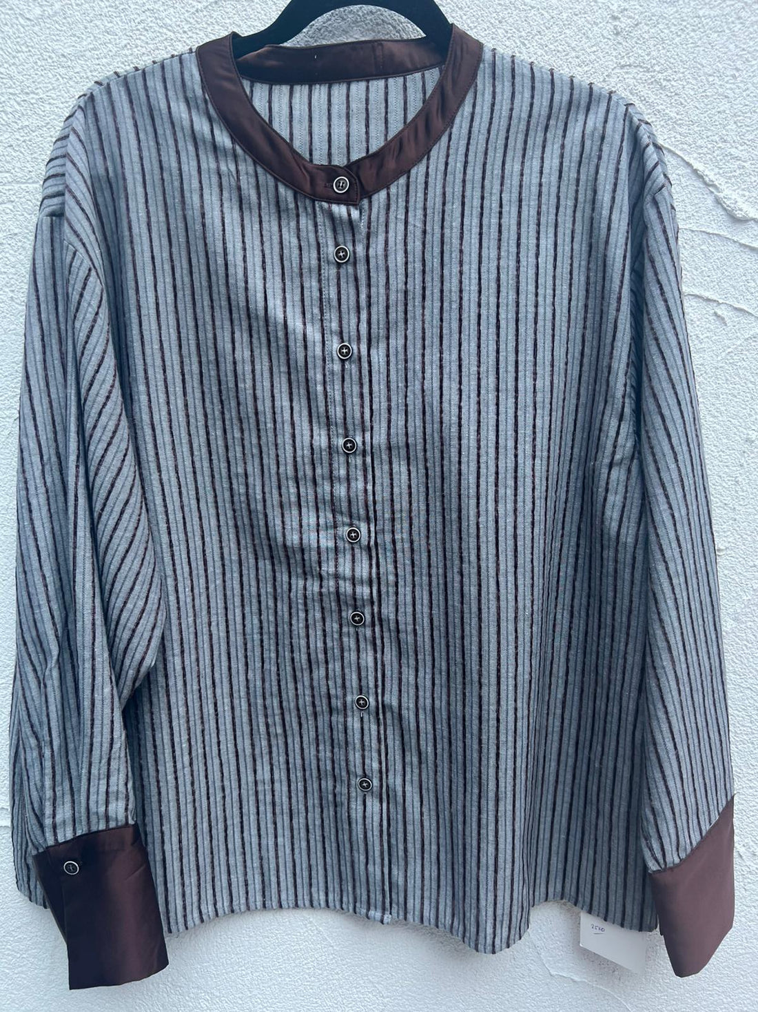 CAMICIA - GRAY WITH DARK BROWN SLEEVES- 25MD7381