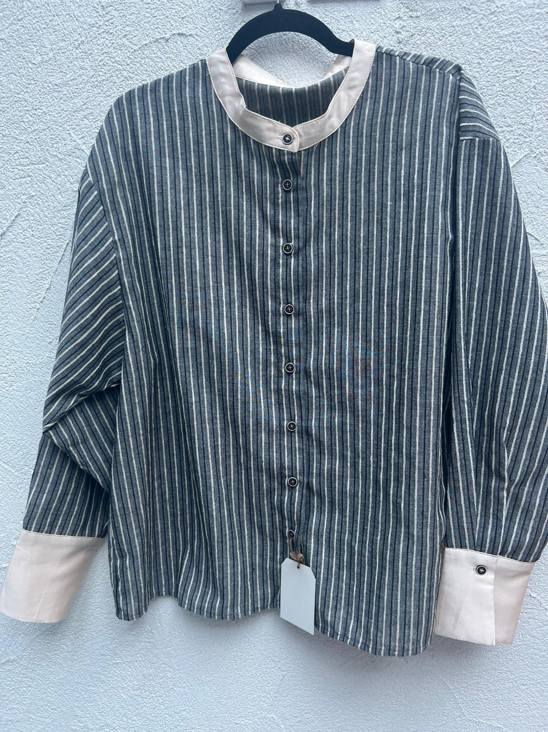 CAMICIA - BLACK LINES WITH CREMY SLEEVES - 25MD7381