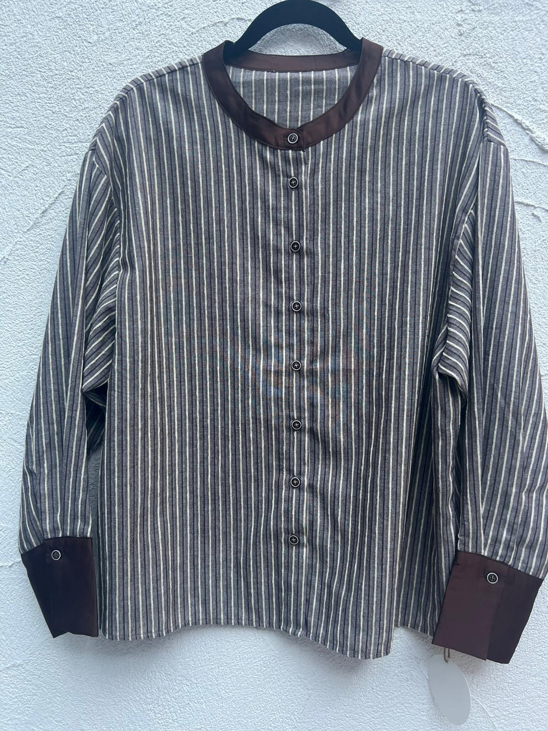 CAMICIA - DARK BROWN LINES WITH DARK BROWN SLEEVES - 25MD7381