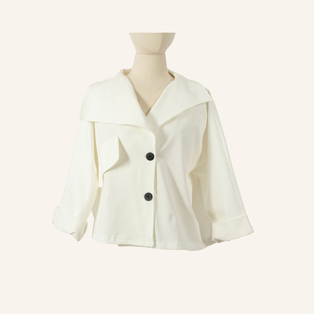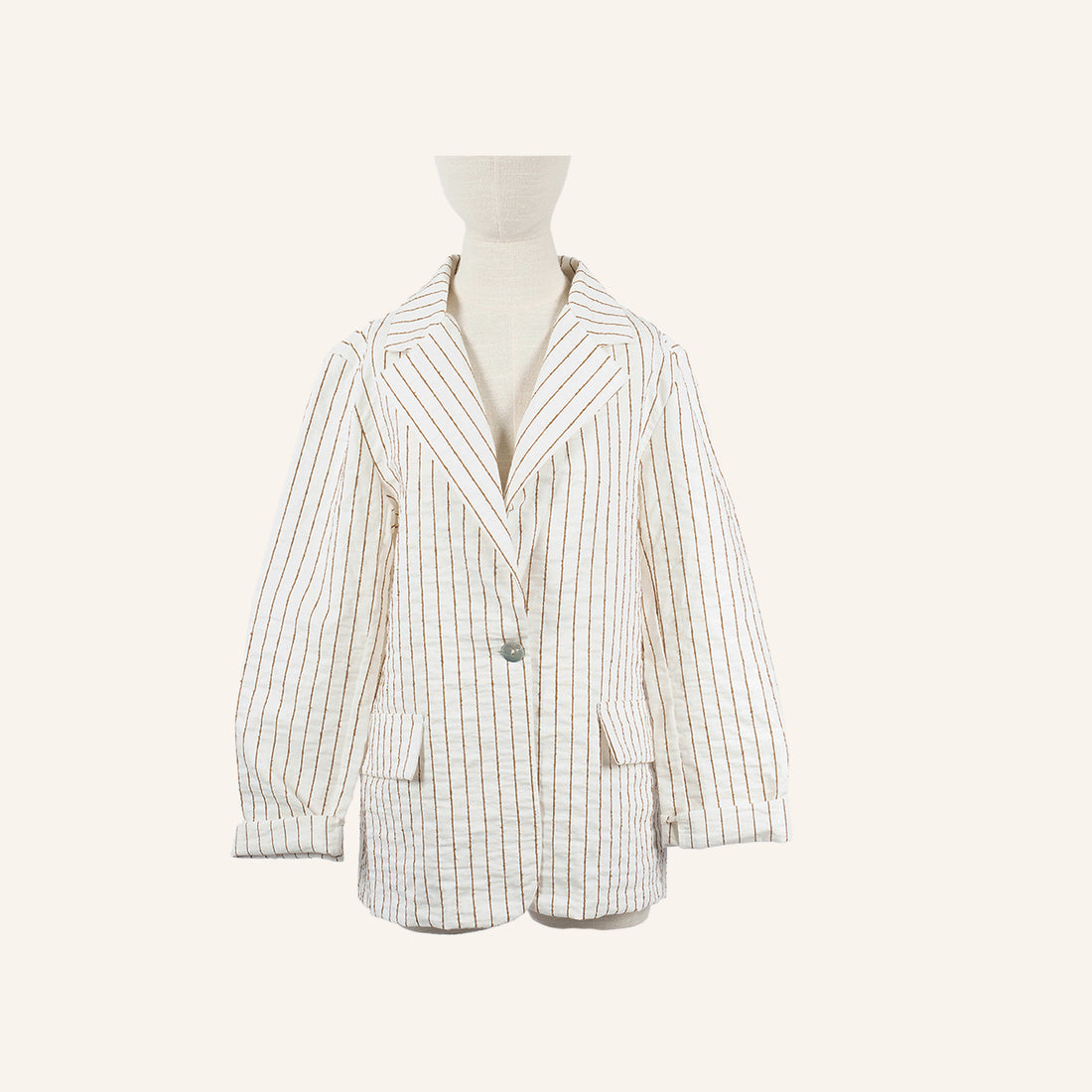 VESTE GILET - OFF WHITE & BROWN - 23092