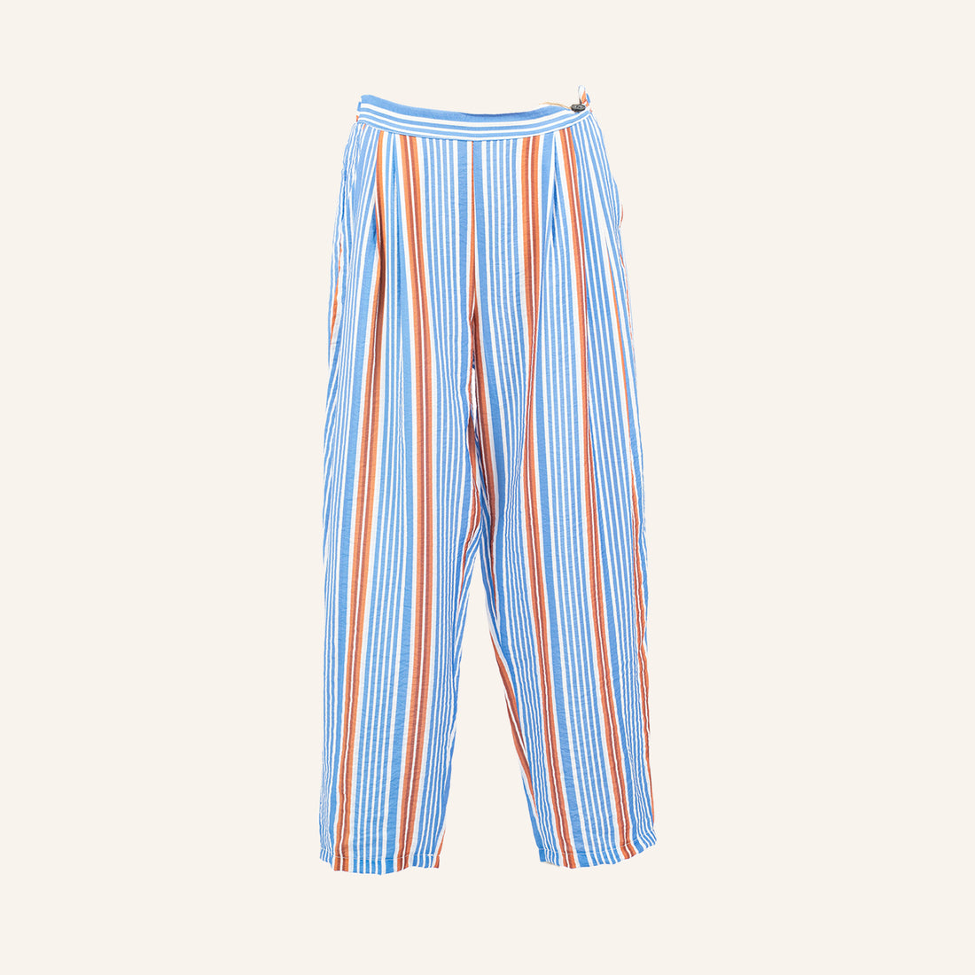 PANTALON - WHITE & SKY BLUE - 61103COTON