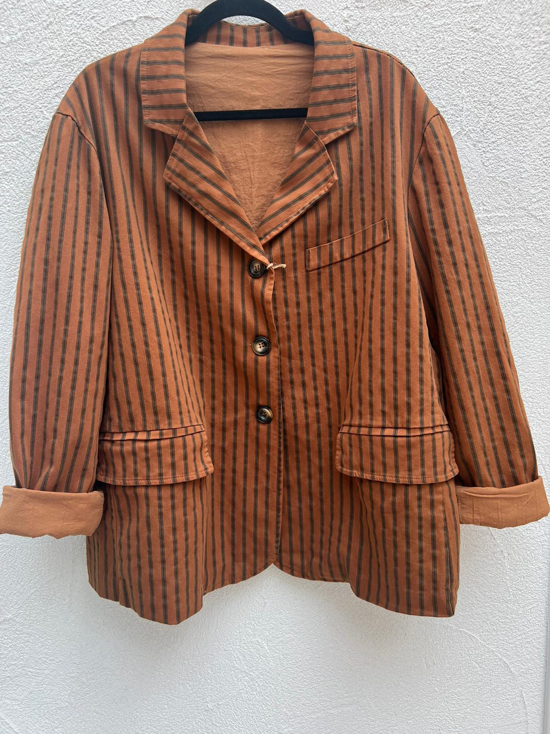 VESTE GILET - NAVY BLUE & BROWN - 66625GA2