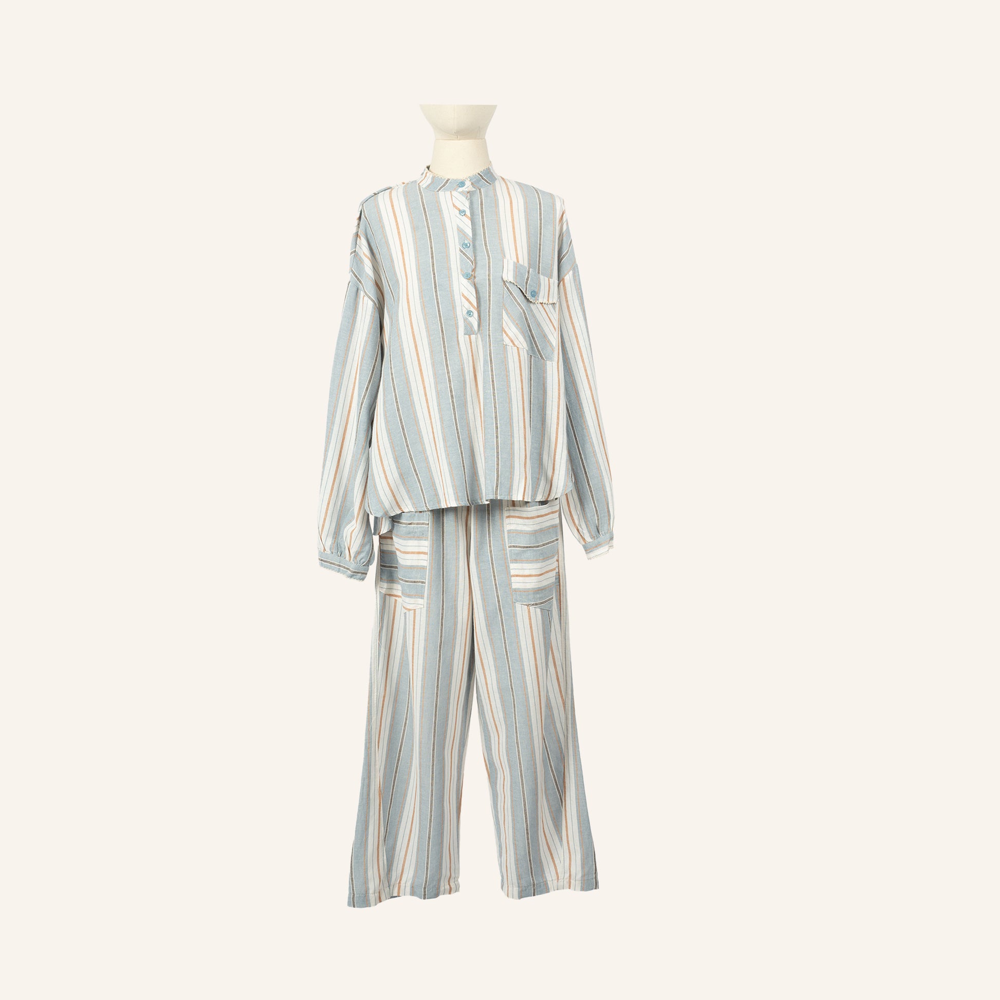 CHEMISE / TUNIQUE - BLUE & BROWN - 1100621COT