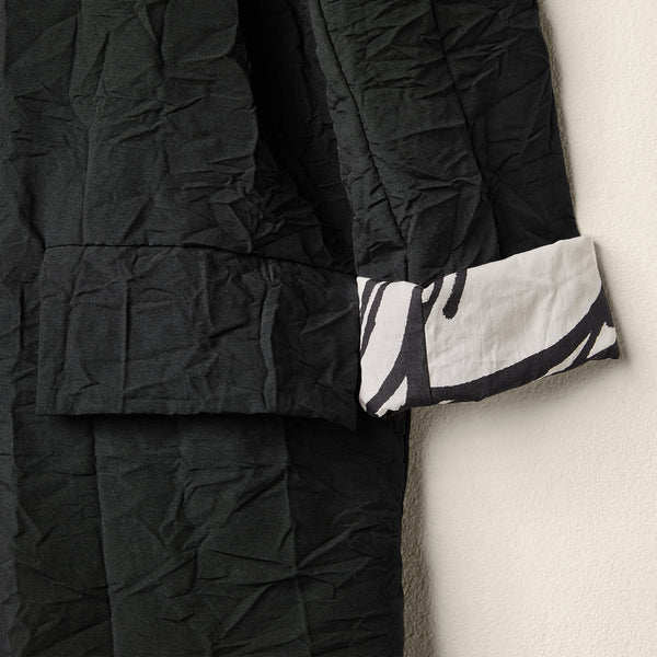 COAT IN WRINKLED EFFECT FABRIC DOUBLED IN B/W PATTERN - 224152 - BLACK