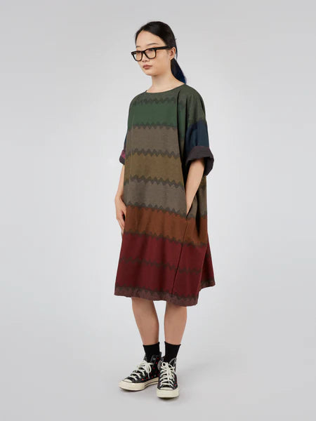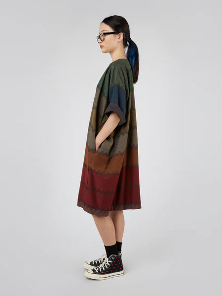 DRESS IN MULTICOLOR FABRIC AUTUMN PALETTE - 110830