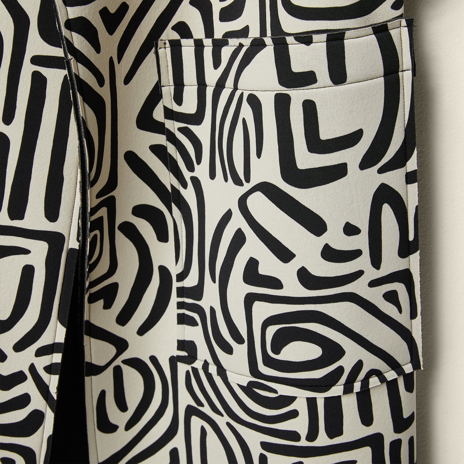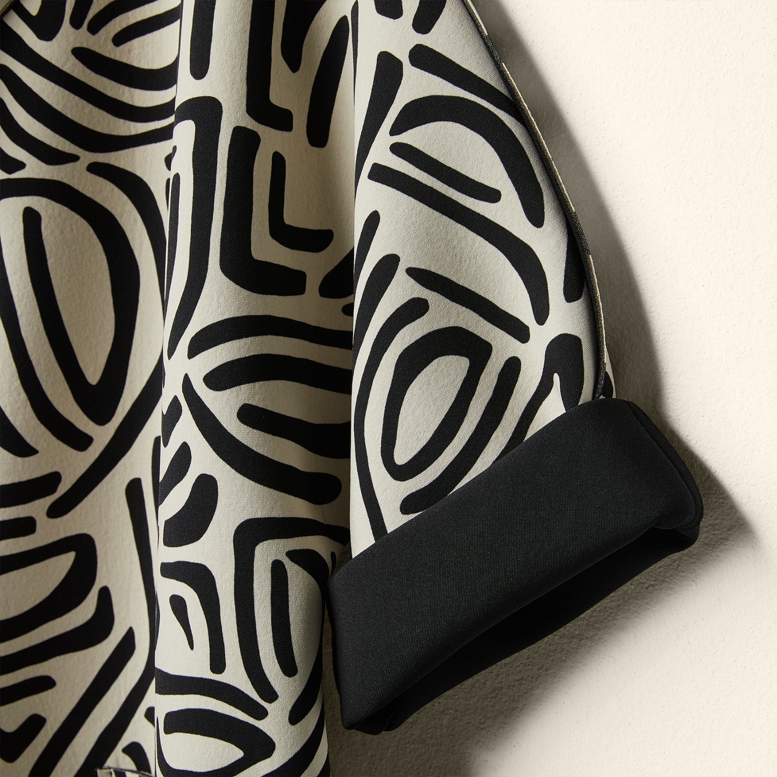 GEOMETRIC PATTERN NEOPRENE COAT - BLACK - 125004