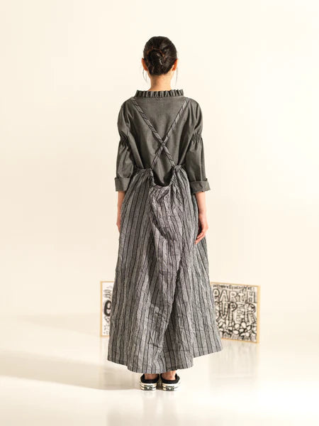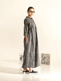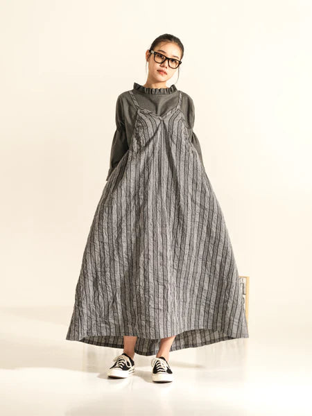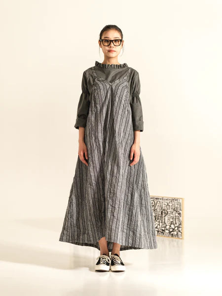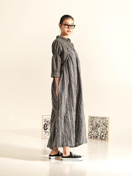 LONG STRIPED DRESS WITH WRINKLED EFFECT -111059