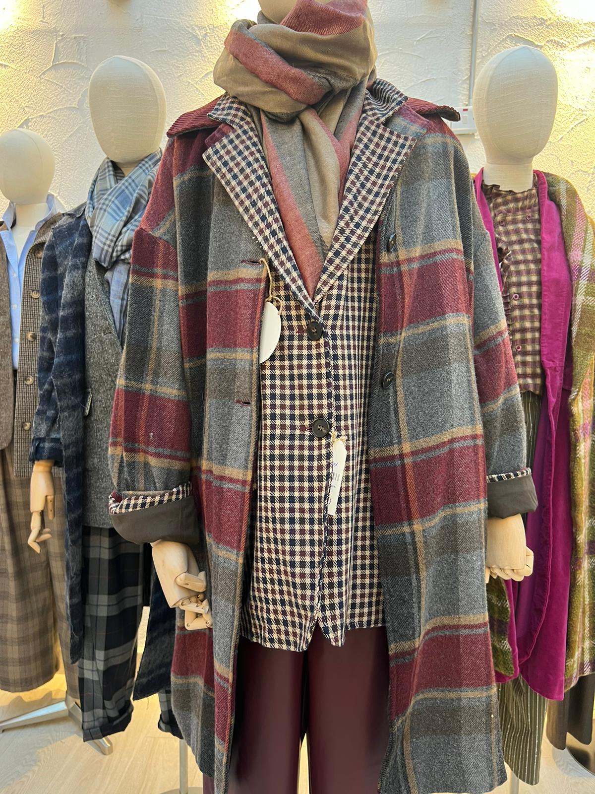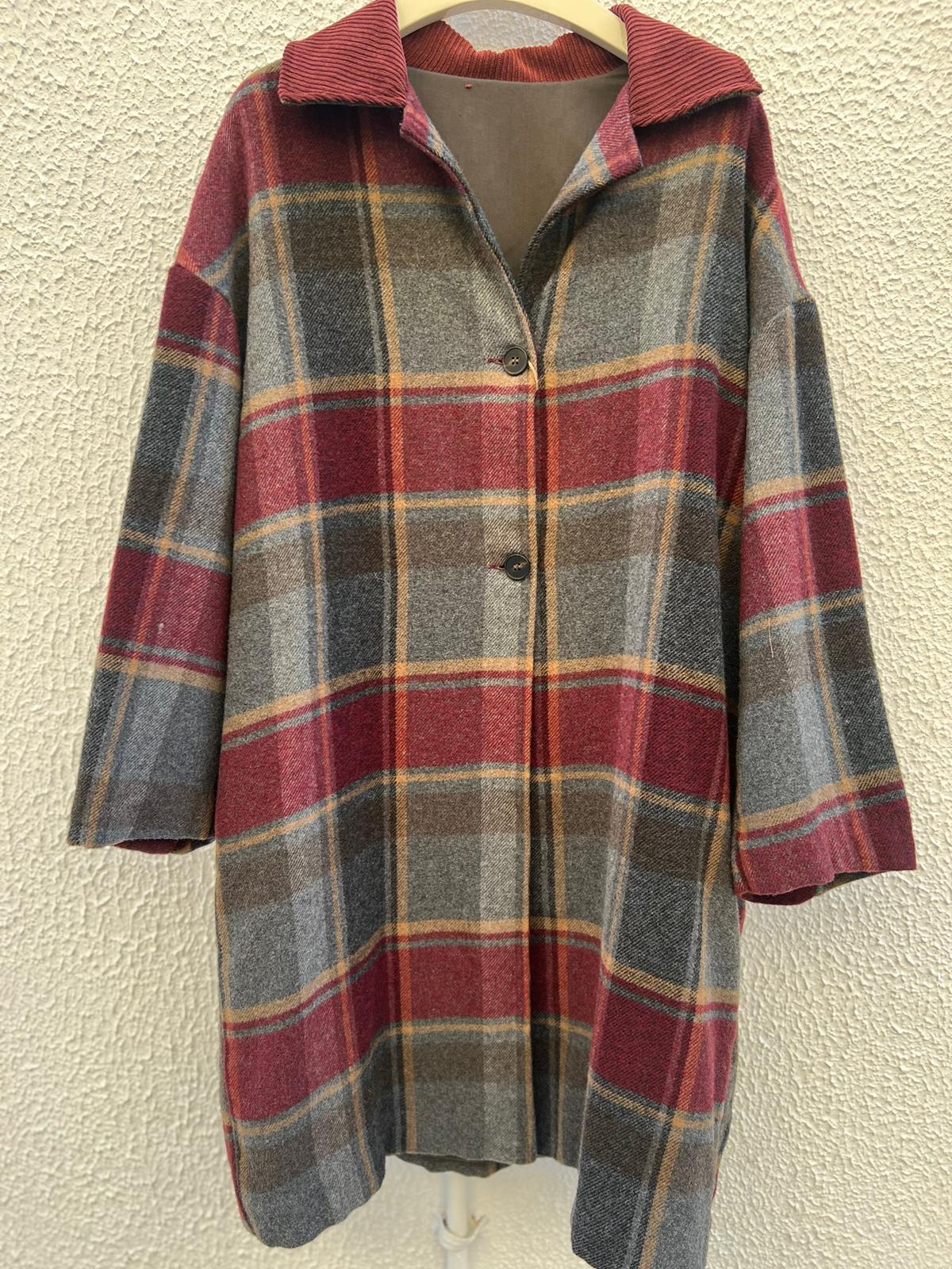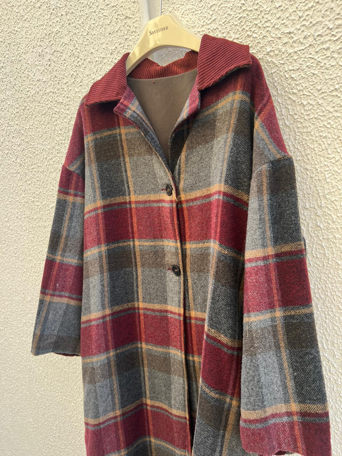 MANTEAU/PANCHO-COAT - GRAY & MAROON - IS200026B-5692