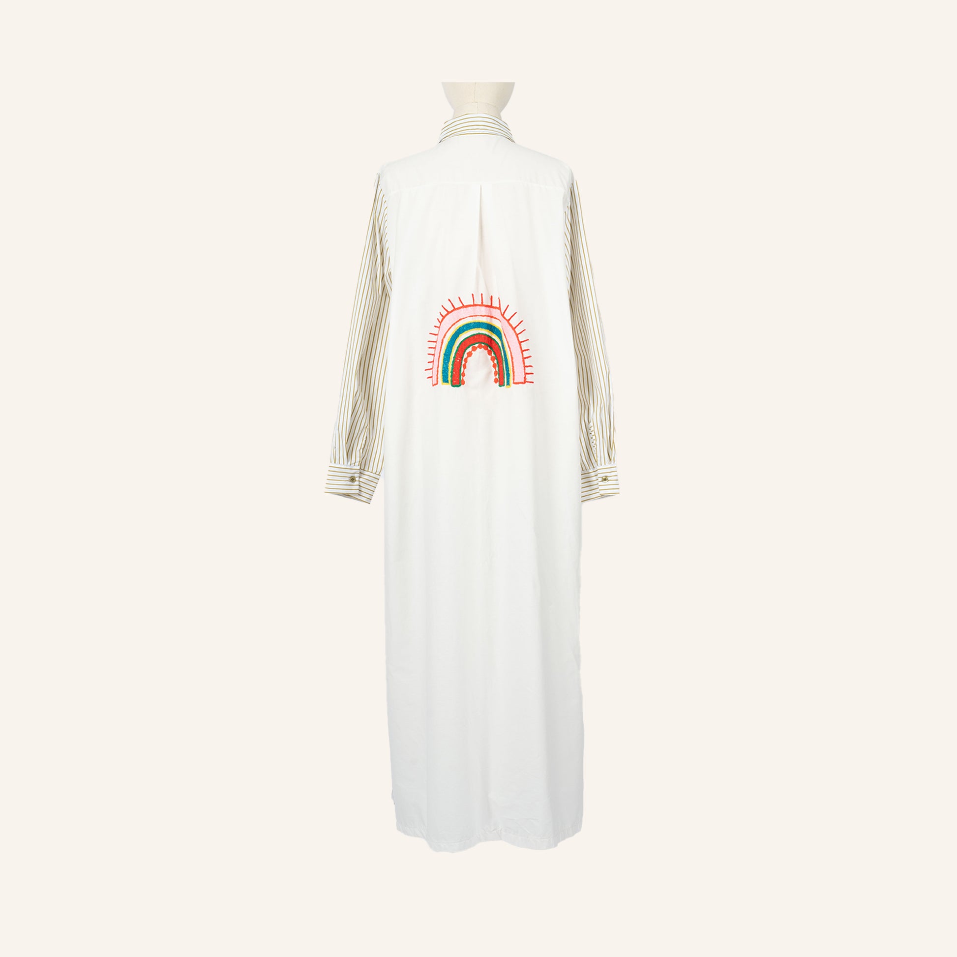 ROBE/DRESS - WHITE & OLIVE GREEN - IS3100146B-STICK