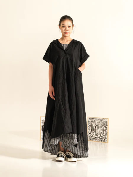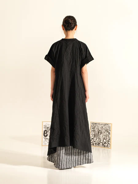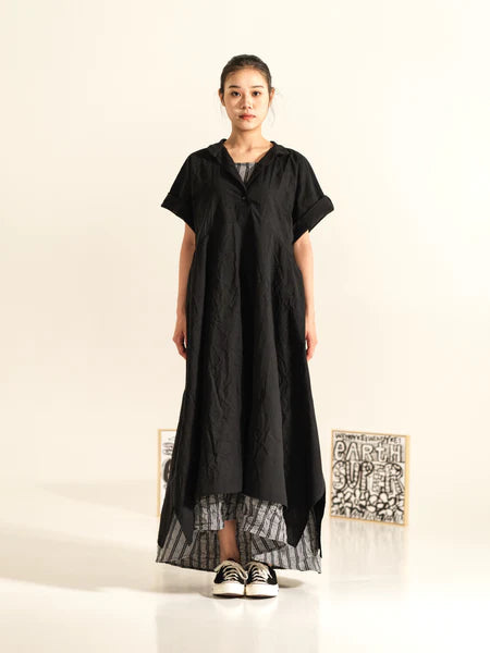 WRINKLED EFFECT DRESS WITH KOREAN COLLAR - 111068